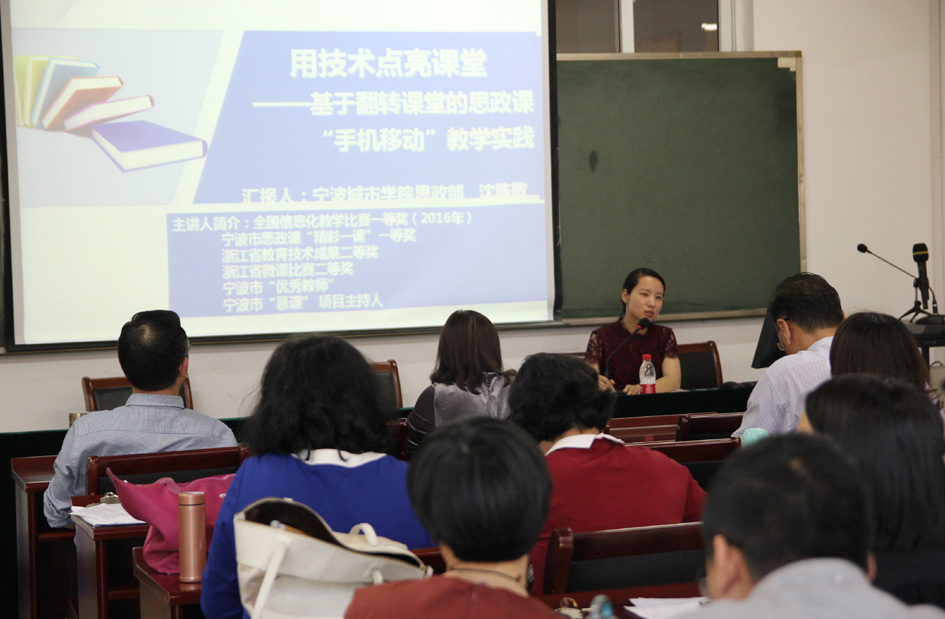 如何选择好、应用好信息技术来破解思政课堂教学困境? 5月10日下午,宁波城市职业技术学院思政部教师沈陈敏应邀来院作题为《用技术点亮课堂——基于翻转课堂的思政课手机移动教学实践》的教学改革讲座。