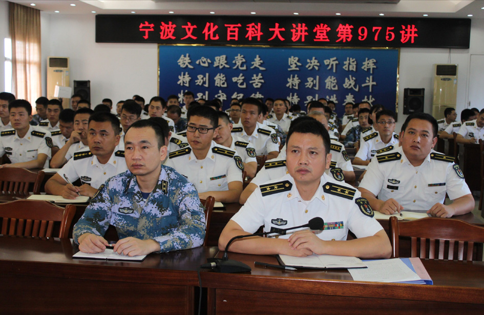 9月26日,应中国人民解放军92899部队的邀请,由宁大电竞博彩 副教授鲍展斌主讲的宁波文化百科大讲堂第975讲:《实践论》与《矛盾论》导读走进军营,部队骨干以上听众110人左右聆听了讲座。