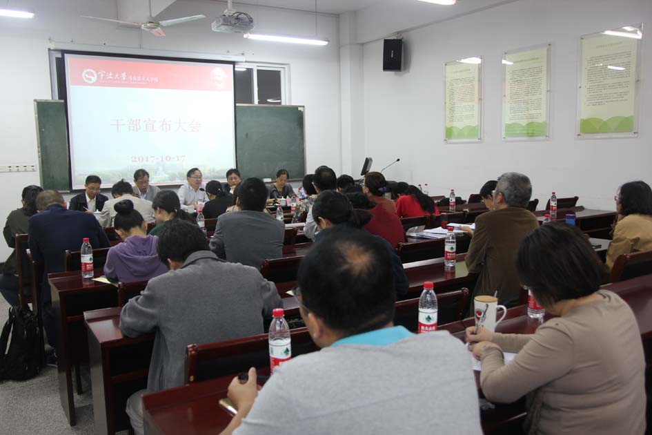 在学院102会议室召开干部宣布大会,宣布宁波大学党委委员、党委宣传部部长张真柱兼任电竞博彩