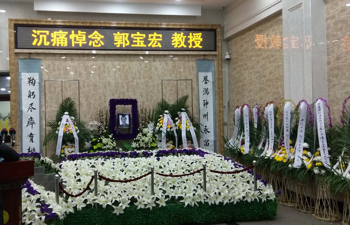 遵照郭宝宏教授家属的意愿及郭教授一贯以来清廉正直的风格,告别仪式简朴而又庄重,郭宝宏教授安详地静卧在鲜花丛中。各级领导、部门、生前友人、同事、学生、晚辈等敬献的花篮、挽联等摆列在仪式现场,表达了对郭宝宏教授的悼念之情。