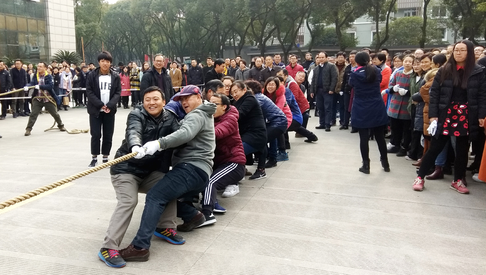 “加油,加油!” 12月27日中午,由校工会组织的2017年宁波大学“迎新年”教职工拔河比赛在安中大楼前拉开帷幕。电竞博彩