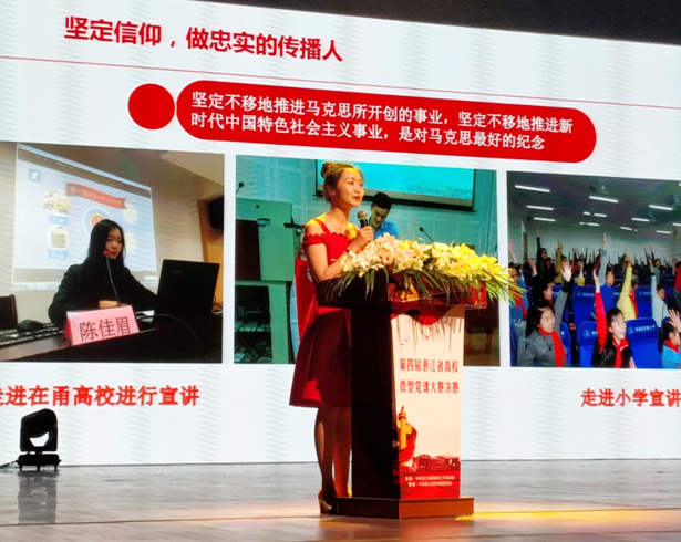 学生理论宣讲团成员陈佳眉荣获一等奖。在5月29日结束的全市微型党课预赛中,陈佳眉进入市决赛。