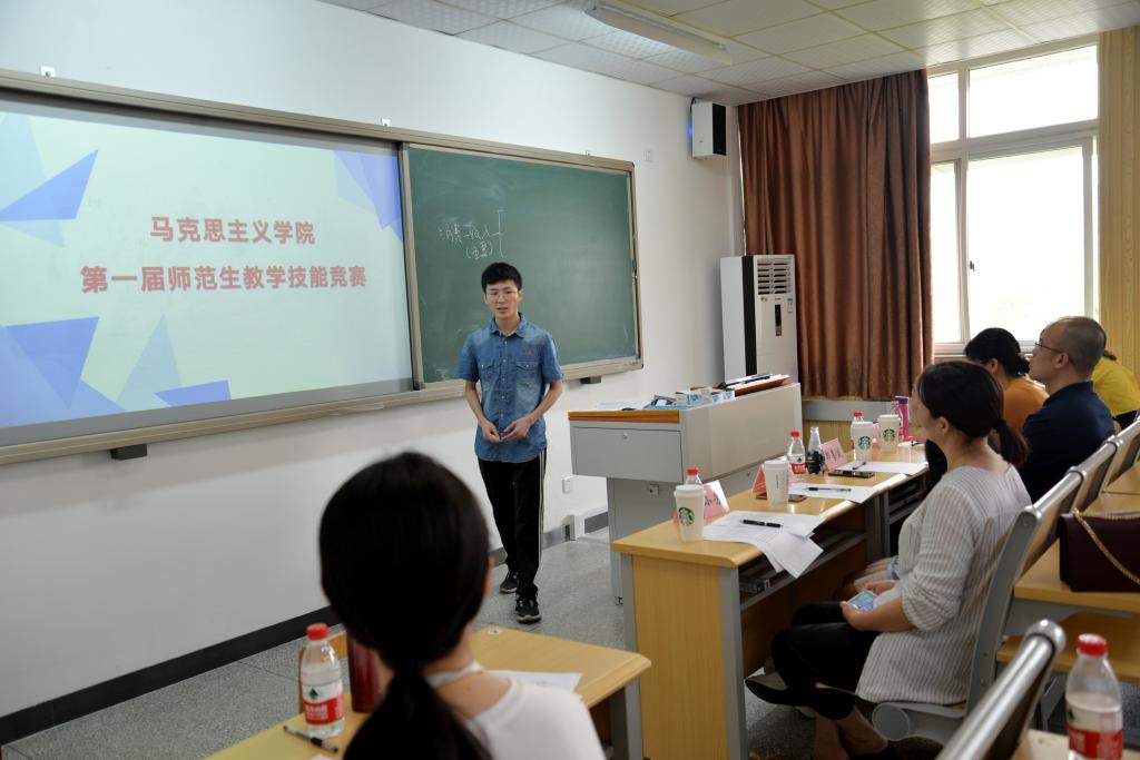 比赛分为即席讲演、模拟上课+板书、现场答辩三个部分,参赛选手在比赛中展现了较强的教师职业能力和综合素质。经过激烈角逐,熊曼均、刘岩煜获一等奖,张家弘、闫佩佩、吴朝清获二等奖,其余选手获三等奖。