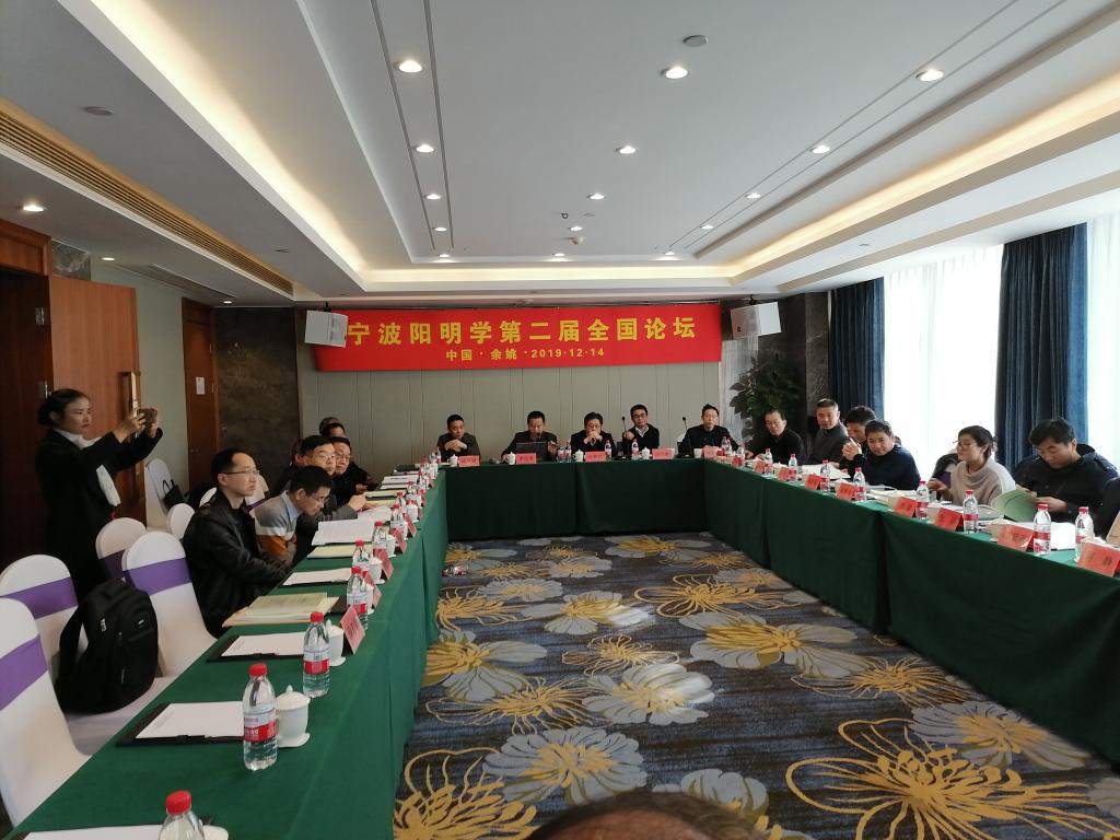 学术研讨阶段由余姚市东海城市文化研究院院长华建新主持。会上,同济大学朱义禄教授疏解了“良知”的本义,重点解说了心学的博大精深,以及留给后人的种种思考。浙江省社会科学院钱明研究员、余姚本土学者朱炯、浙江万里学院张实龙教授分别对王阳明亲传高足弟子钱德洪的学术思想阐述各自的观点。朱炯点校整理的《钱德洪集》与张实龙所著的《阳明心学传播者——钱德洪研究》分别出版,大大推进了对钱德洪研究的进程,为传承弘扬阳明文化作出了重要贡献。华建新对第一阶段的学术研讨作了总结性发言,他认为:一是要注重对阳明学的地域性研究;二是要开拓视野,密切关注王阳明的弟子对心学发展所作出的重大贡献;三是要以理论研究为引导,进一步推动“阳明故里·阳明古镇”的理论研究与实际应用,以彰显余姚阳明学的时代精神和当下价值。下午,继续进行圆桌论坛。全国各地的知名阳明学专家刘聪、刘新军、俞秀玲、马寄均、褚纳新、计文渊、王孙荣、叶云、王志俊、王志鹏等30多位同仁作了精彩与深入的发言,对安徽王学、阳明学与美学、南大吉与王阳明、阳明四句教等问题展开深入的研究。很多余姚乡贤结合自己的工作谈自己对阳明学的研究,生动有趣,耳目一新,令人感动,体现出浓郁的地方性与学术性。